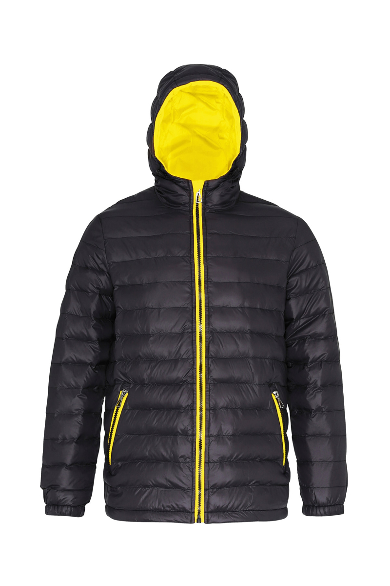 Grammage : Enveloppe en 40 g/m² | Matelassage 228 g/m² | Doublure 50 g/m² | Doublure chaude en polyfill | Capuche doublée et ajustable | Composition Extérieur: 100% nylon | Rembourrage: 100% polyester | Doublure: 100% nylon | Zip intégral avec protège-zip | Deux poches intérieures | Deux poches avant zippées | Poignets élastiques | Système facile de réétiquetage.