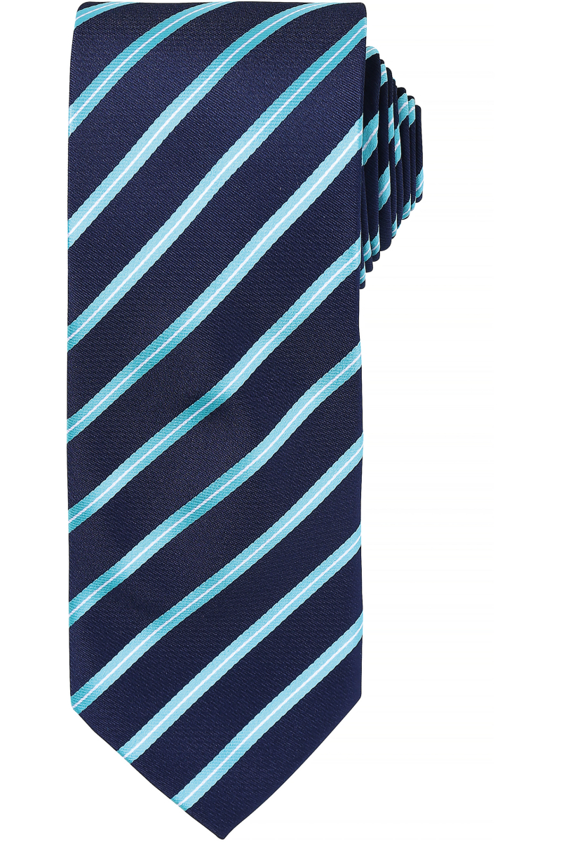 Cravate Rayée Sport classique, idéale pour harmoniser une tenue d’équipe. Les rayures fines dans le sens de la longueur font toute l’élégance de cette cravate.