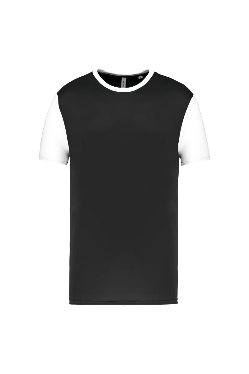 100% polyester | Maille interlock | Coupe droite | Encolure ronde contrastée et bande de propreté | Manches droites contrastées | Finitions double aiguille au bas de manches et de vêtement | Résistant et idéal pour les sports collectifs |